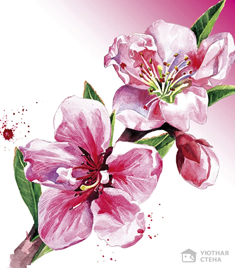 Фреска Цветы на ветке акварелью