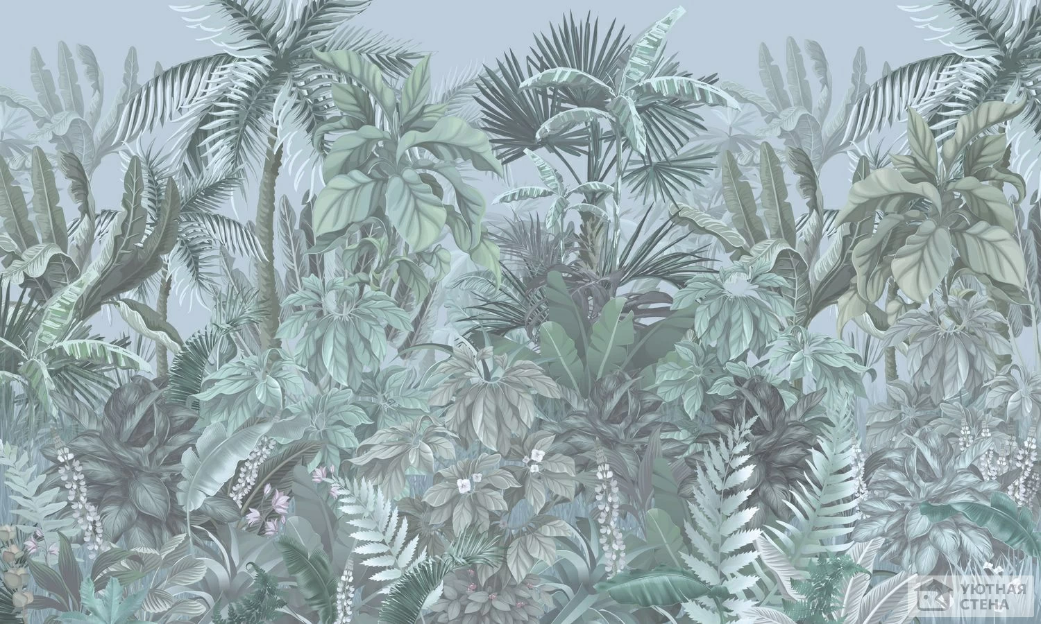 Дизайнерские фрески Буйство тропических листьев в зеленом цвете