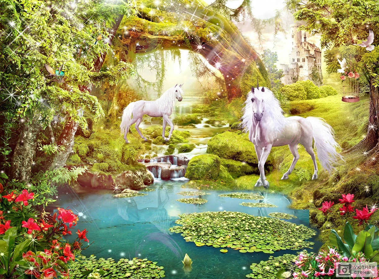 Дизайнерские фрески Единороги у ручья