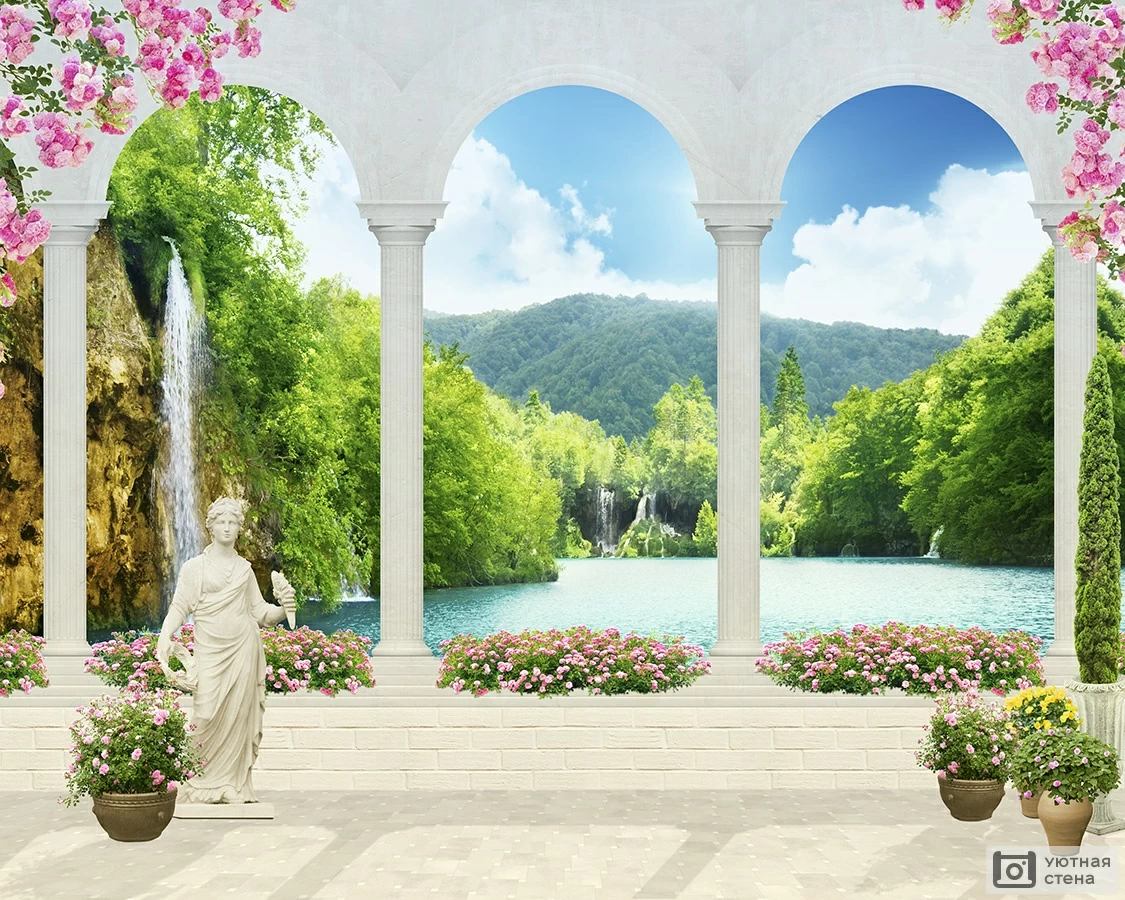 Дизайнерские фрески Терраса с видом на водопад и озеро