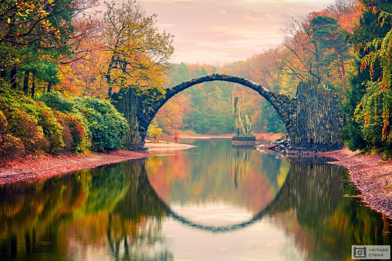 Фреска Впечатляющая осень в парке Кромлау, Германия