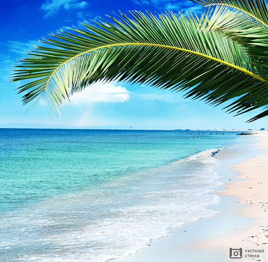 Фреска Красивая ветка пальмы на фоне морского пейзажа