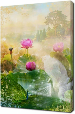 Картина на холсте Фреска с павлинами и лотосами