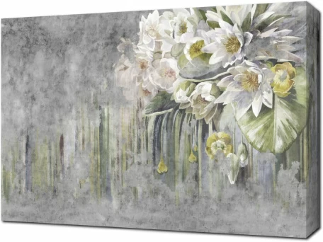 Картина на холсте Водяные лилии маслом на сером фоне