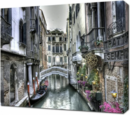 Картина на холсте Небольшой мост и гондола на канале Венеции. Италия