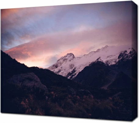 Картина на холсте Рассвет в заснеженных вершинах гор