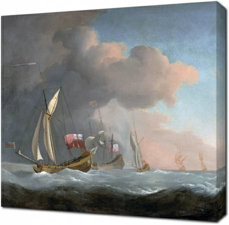 Картина на холсте Виллем ван де Вельде младший — Английские королевские яхты в море при сильном ветре