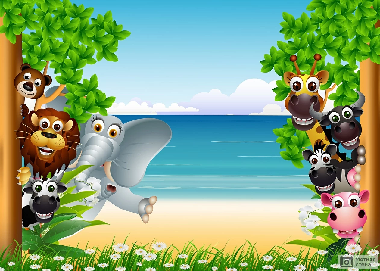 Фотообои Смешные животные на фоне пляжа