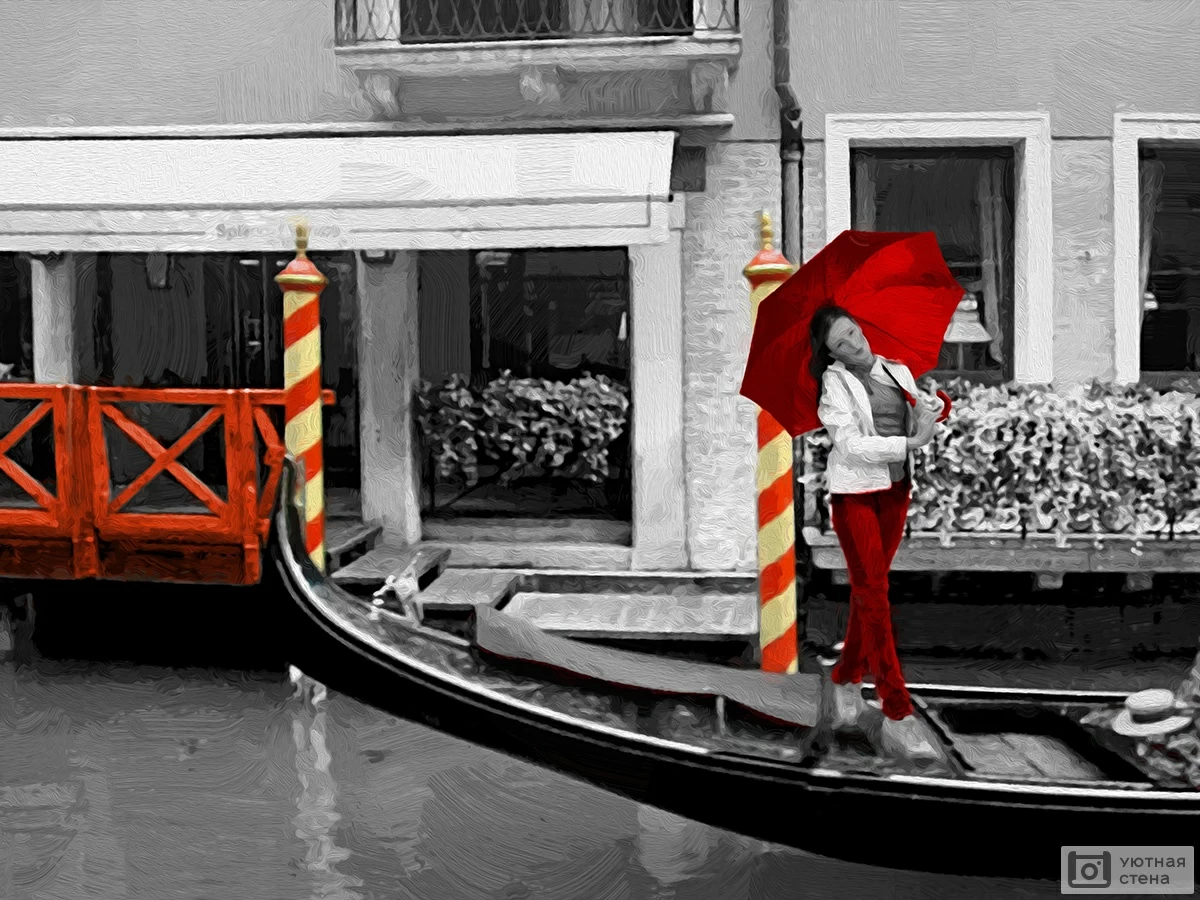 Фотообои Девушка с зонтом на гондоле в стиле масляной живописи