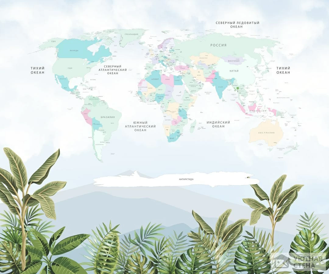 Дизайнерские фотообои Карта на фоне тропических листьев