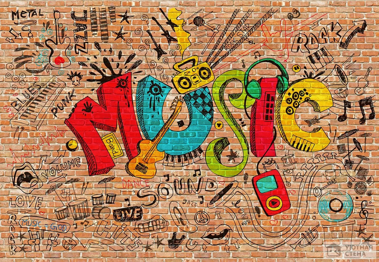 Дизайнерские фотообои Граффити музыка на кирпичной стене