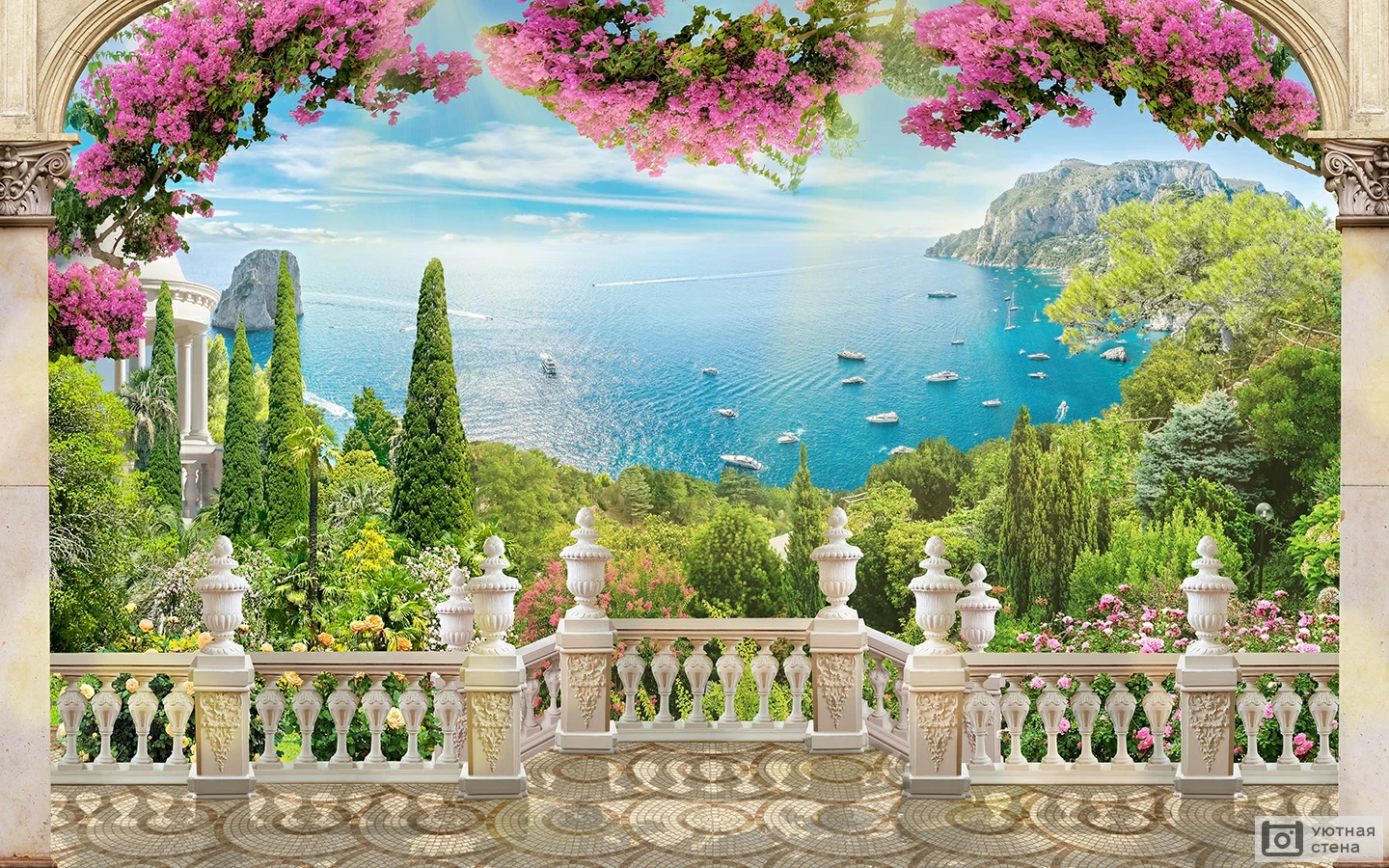 Дизайнерские фотообои Широкая терраса с видом на яхты