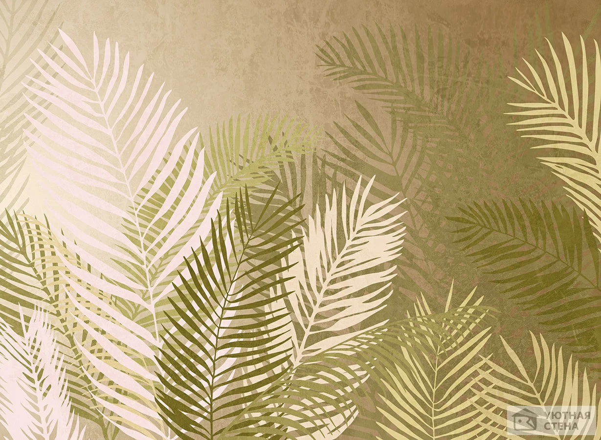 Дизайнерские фотообои Желтые силуэты пальмовых листьев