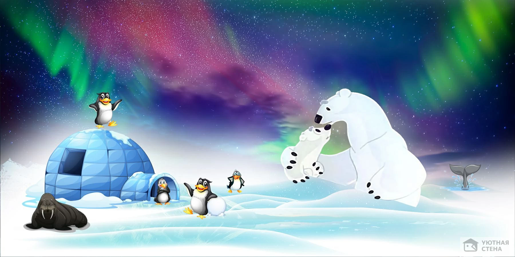 Фотообои Умка на фоне северного сияния