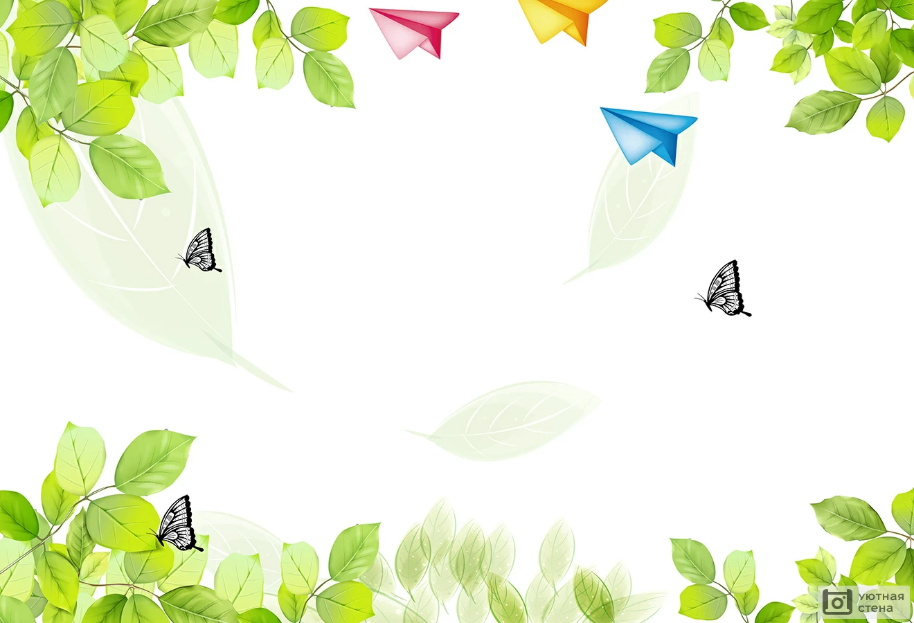 Весенние листья и бабочки