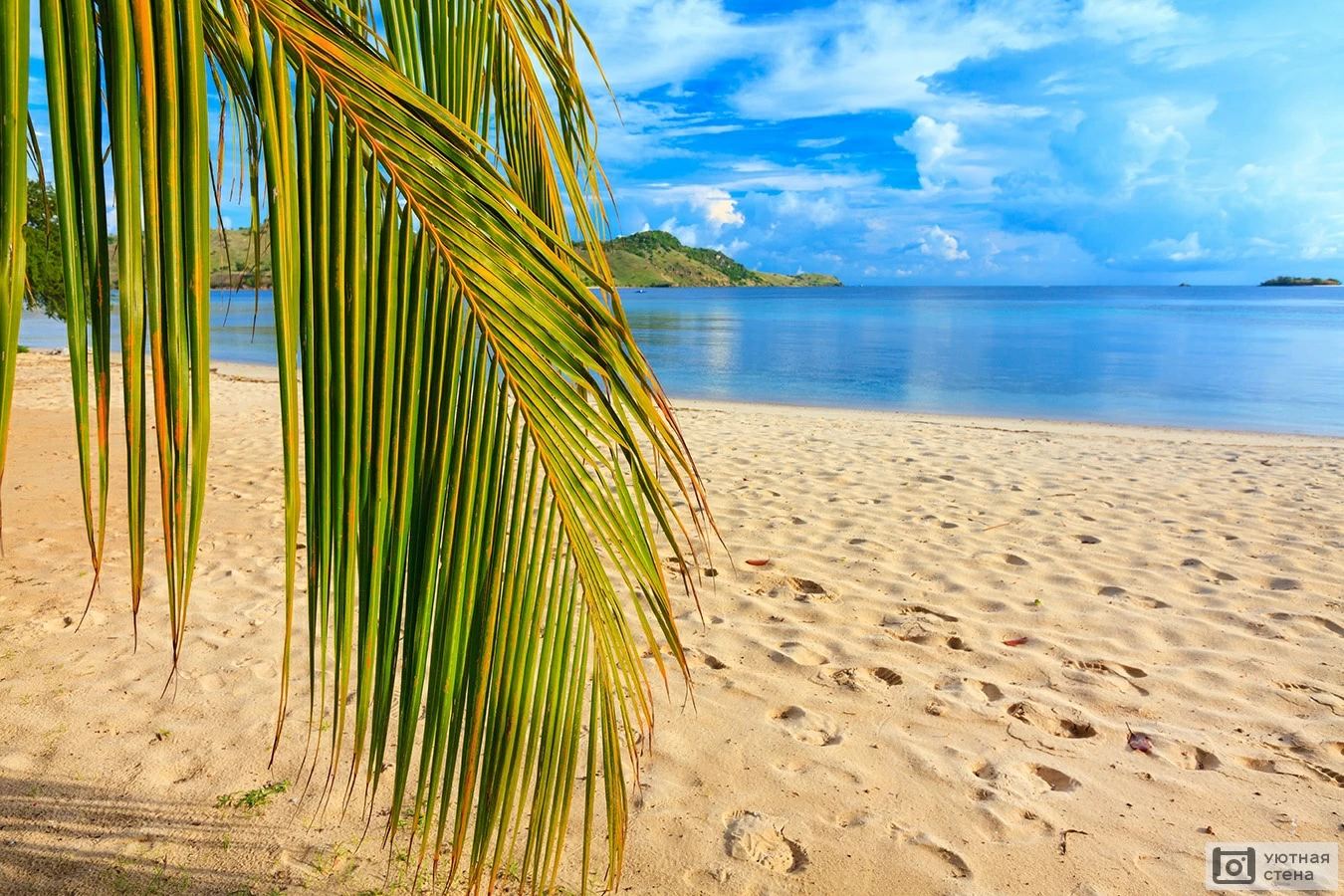 Фотообои Ветка кокосовой пальмы на тропическом пляже