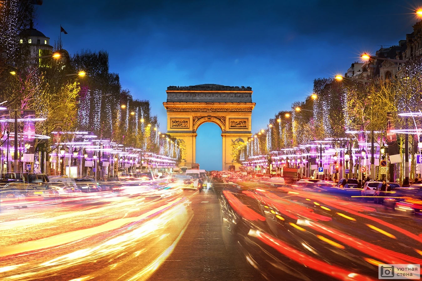 Фотообои Елисейские поля и Триумфальная арка на закате. Париж. Франция