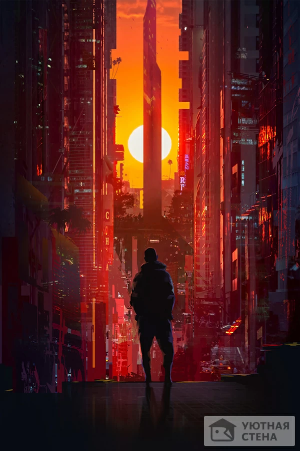 Фотообои Силуэт парня на фоне мегаполиса